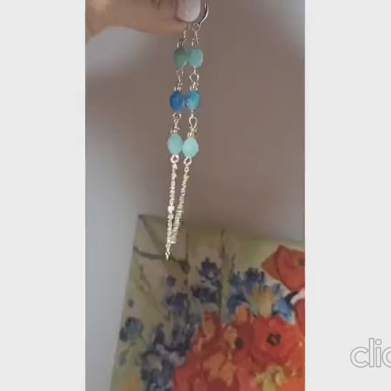 Looking for gemstone earrings that combine elegance and natural beauty? These stunning dangle earrings feature the serene aqua tones of blue amazonite paired with the deep, captivating blue of apatite gemstones. Together, they create a soothing, ocean-inspired design that feels both calming and uplifting. These earrings are lightweight yet eye-catching, perfect for any occasion.