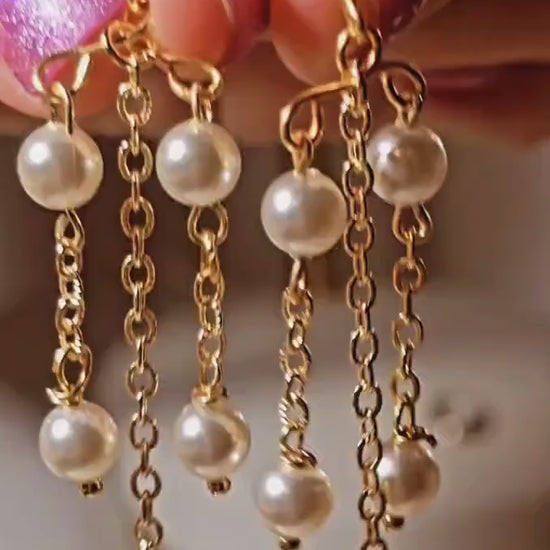 Their luminous pearls catch the light with every movement, making them the perfect accessory for any occasion, whether it's a special celebration or a chic everyday look. These pearl earrings symbolize purity and protection. The natural freshwater pearls add a unique charm with their organic shapes and radiant glow.