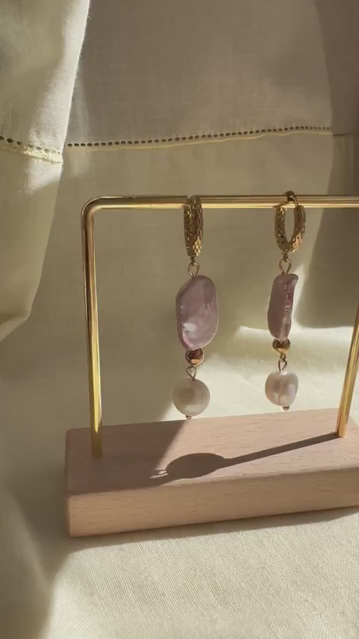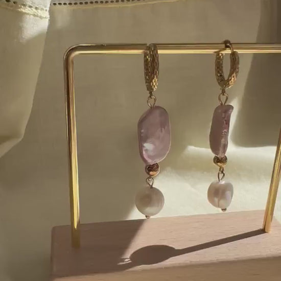 Each pearl is unique, with its distinct shape and enchanting hues, making it an ideal accessory for brides or those celebrating special moments. The mother of pearl symbolizes purity and protection, while the pink baroque pearls embody love and femininity, making these pearl earrings a meaningful and timeless addition to any jewelry collection.
