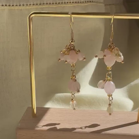 Searching for the perfect pair of gemstone earrings to upgrade your look? These rose quartz and moonstone earrings are a stunning blend of elegance and charm, handcrafted with genuine gemstones like AAA rose quartz and moonstone. The delicate cluster design features soft beige, rose, and golden tones, making these earrings a versatile accessory for weddings, parties, or everyday wear.