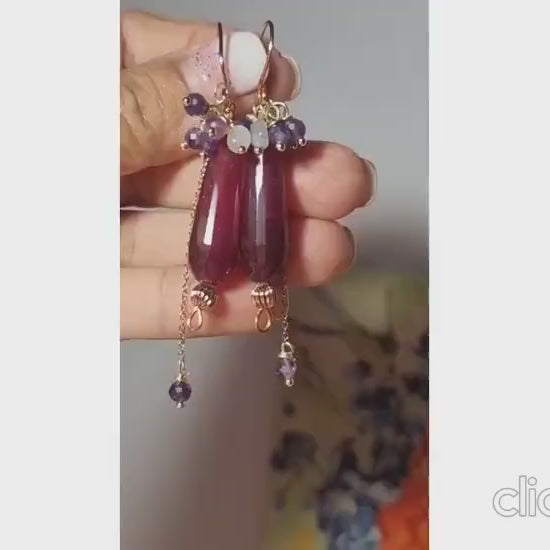 Smoky Rose Quartz Jade Burgundy Earrings, Tourmaline and Amethyst Earrings, Gemstone Earrings, Bridal Earrings, Anniversary Earrings