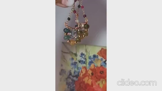 Searching for the perfect statement earrings to add color and elegance to your jewelry collection? These tourmaline dangle earrings are a vibrant choice! These gemstone earrings feature a beautiful blend of green, pink, golden, and orange tourmaline stones, and each bead brings its unique charm. The half-hoop design with cascading beads creates movement and texture, making these earrings a sophisticated yet playful accessory.