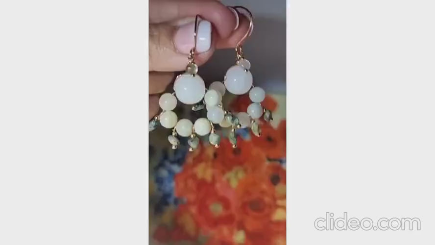 White Jade Earrings, Green Gemstone Earrings, Boho Earrings, Multi Stone Dangle Earrings, Bridal Earrings, Natural Drop Earrings for Women
