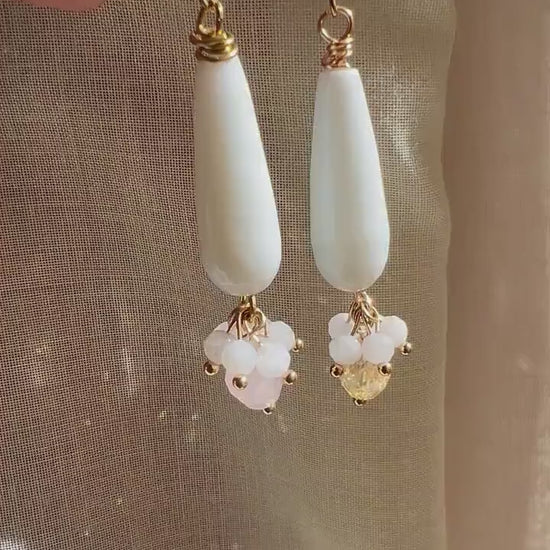 White Jade Earrings, Teardrop Earrings, Rose Quartz Earrings, Citrine, and Moonstone Earrings, Bridal Earrings, Wedding Earrings for Women